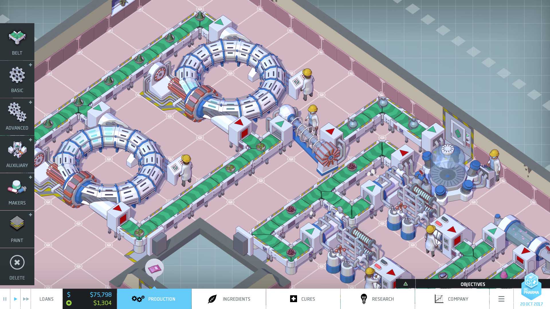 Big Pharma je zčásti obchodní simulátor, zčásti logistická hádanka. Pracovat v laboratoři na zdokonalení léků je jedna věc, ale proměnit všechnu tu vědu v tvrdou měnu znamená přizvat k tomuto problému technickou a obchodní mysl. Tovární prostory jsou drahé a ty hogofogo nové aglomerátory a centrifugy se vedle sebe ne vždycky hezky vejdou.