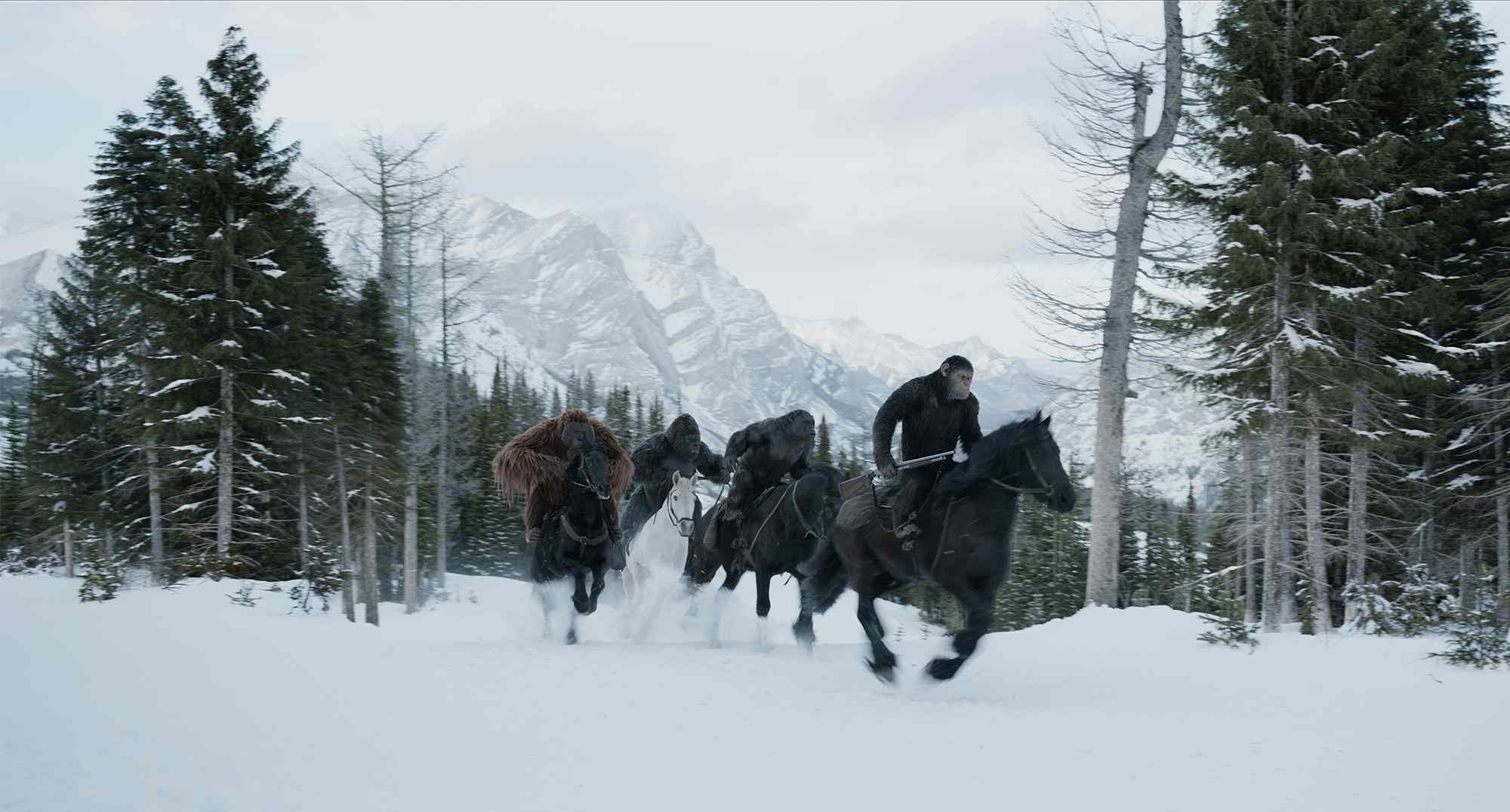 Jejich skupina ustoupila do lesů, kde se často utkávají v bitvách s lidskou armádou, vedenou nelítostným plukovníkem McCulloughem (Woody Harrelson). Ztráty opičího společenství jsou obrovské a Caesar cítí bolest z každé smrti. Potýká se s vlastními temnějšími instinkty a nastupuje na cestu pomsty, na níž se nevyhnutelně střetne s plukovníkem v epické bitvě, která určí, kdo se stane vůdčím druhem, jenž bude určovat další osud těch druhých, poražených...